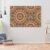 Golden round frame painting that brings an artistic touch to any modern bedroom.